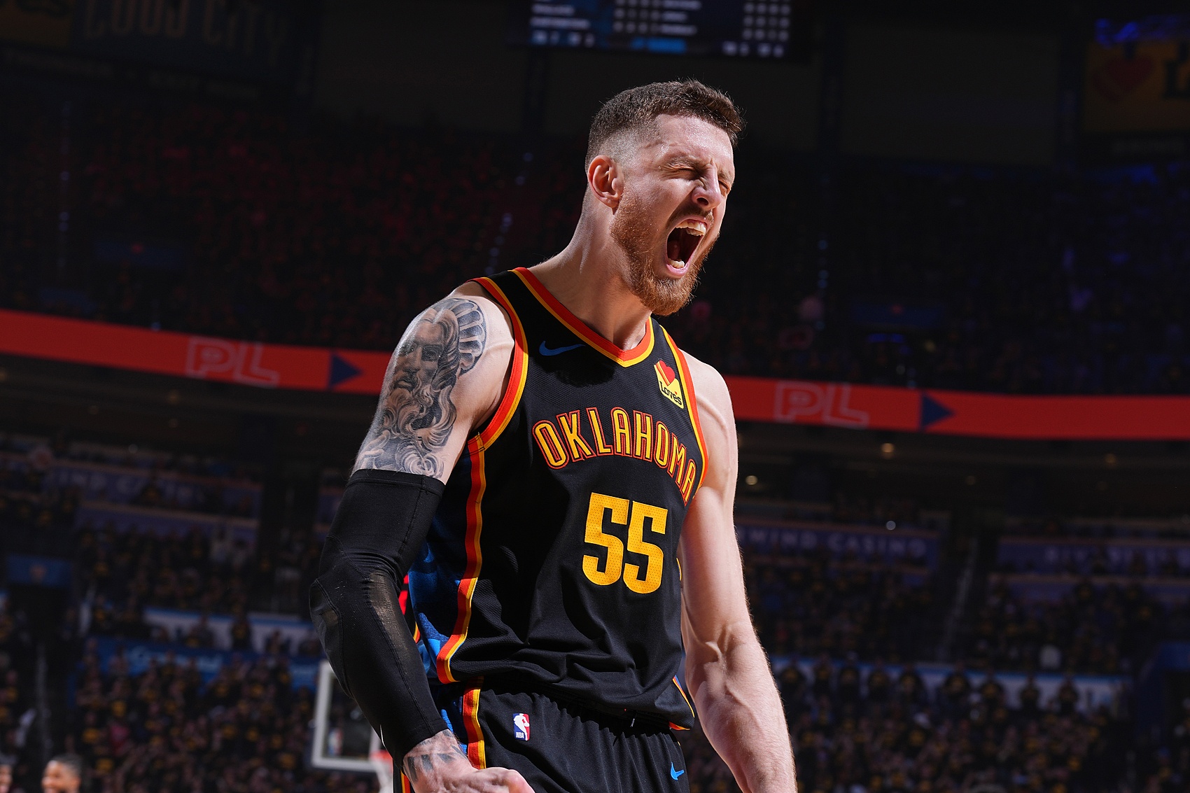在次轮7场比赛中,哈尔滕施泰因给雷霆提供了非常大的帮助。他场均可以得到11分8.7板2.3助,命中率达到了59%。