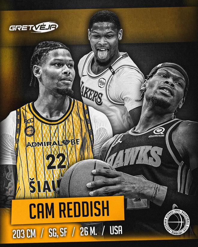北京时间9月12日,据官方消息,2019年10号秀、上赛季效力于湖人队的卡梅伦-雷迪什与立陶宛球队希奥利艾男篮签约。