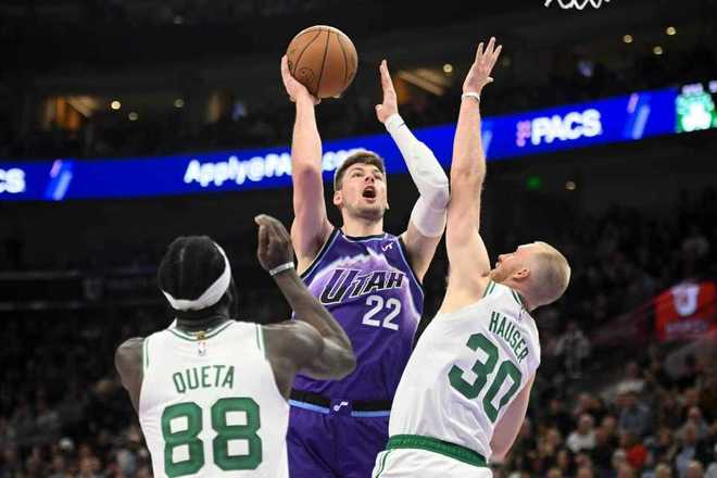 中场休息回来,双方进攻火力升级均是单节轰下30+得分展开对攻,凯尔特人更是升级到单节狂轰40分。凯尔特人不断冲击内线逐步以76-72反超4分,爵士内外开花回敬一波11-5攻势反超2分,双方持续交替领先缠斗至凯尔特人85-88落后。凯尔特人一波9-0攻势反超6分,爵士冲击内线缩小差距,凯尔特人单节40-32净胜8分,三节结束凯尔特人99-96反超爵士。前三节比赛,爵士三分37中15,乔治5记三分28+7、努尔基奇19+6+6与马尔卡宁16+6;凯尔特人三分37中11,布朗17+6+9引领凯尔特人已经多达6人得分上双。