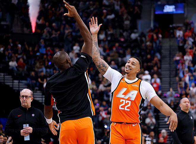 本场比赛中,快船的替补侧翼新星乔丹-米勒(Jordan Miller)在比赛最后一段时间也是得到了出场机会。米勒全场出场7分18秒,投篮4中3,三分线外1中0,得到了6分1篮板1盖帽的数据,没有失误和犯规,正负值为+2。米勒展现出了相当不错的突破能力和终结能力,看起来对手也是没有办法对他的突破和内线冲击进行有效地限制,他在场上显得非常从容。米勒在防守端的表现其实也是值得肯定的,他也是发挥出了自己在防守端的特点。米勒在本场比赛中也是在有限的出场时间内展现出了自己在攻防两端的能力,可惜他的出场时间实在是太少了一些,他在这种情况下也确实是没有办法在这种情况下打出更好的数据了,不过他也已经做得足够好了。