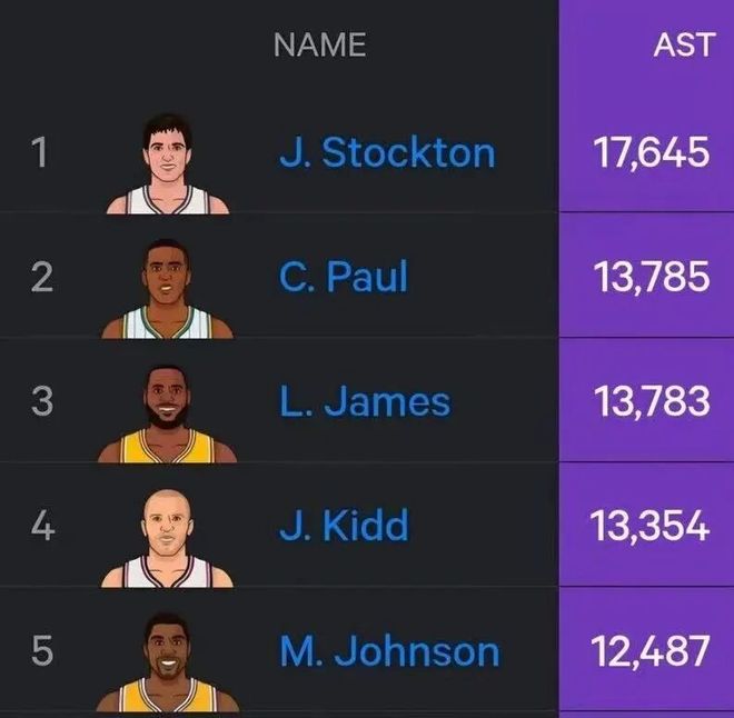 眼瞅着,老头在NBA历史助攻榜上的排名