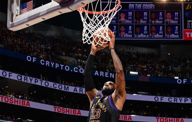 詹姆斯被换下去休息了一会,重新回来后,他在还剩1分57秒突破上篮得分,帮助湖人将领先优势扩大到9分,继而他助攻斯马特投进三分球,还助攻海斯扣篮得分,湖人领先10分,比赛基本失去悬念。