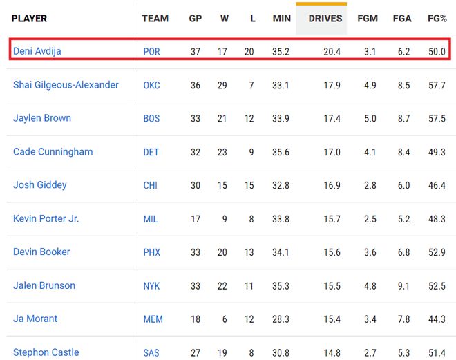 值得一提的是,阿夫迪亚是本赛季的突破之王,场均20.4次突破排名联盟第一,亚历山大17.9次排名第二,杰伦·布朗17.4次第三。阿夫迪亚场均靠突破得到10.1分,还场均靠突破送出2.8次助攻。