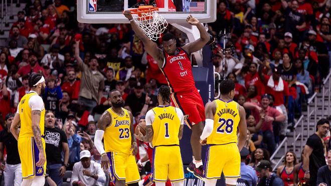 在2024年的附加赛中,锡安·威廉姆森和新奥尔良鹈鹕队与洛杉矶湖人队相遇,他们原本有机会锁定季后赛的最后一个席位。威廉姆森开局表现出色,全场27投17中,砍下40分,并抢下11个篮板。然而,鹈鹕队最担心的事还是在最不该发生的时候发生了。