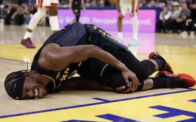 第三节还剩7分41秒时,巴特勒在接球过程中与热火球员戴维恩·米切尔发生碰撞,右膝着地时受伤。那一刻,他痛苦地抓住膝盖,尖叫出声,无法自行站立。最终在队友的搀扶下离开球场,赛后确诊为右膝前十字韧带撕裂,勇士随后官宣赛季报销。