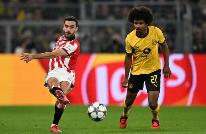 上半场结束,多特蒙德依靠丹尼尔-斯文松的破门,主场暂时1-0领先毕尔巴鄂。下半场,两队各进一球,多特蒙德继续一球领先,最后再进两球,最终4-1大胜。