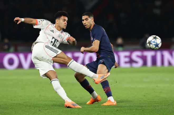 接连被打击之后,巴黎也收到了一个好消息,就是多打一人。上半场补时阶段,迪亚斯背后凶狠铲倒阿什拉夫,主裁判第一时间判给迪亚斯黄牌,随后VAR介入改判直红,将迪亚斯直接罚下,拜仁只能十人作战。