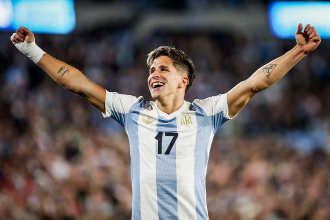 而在国家队层面,朱利亚诺·西蒙尼也是三兄弟中被阿根廷成年国家队征召次数最多的,他目前已经成为阿根廷国家队的常规主力人选,可惜在最近一次国家队出场(0-1不敌厄瓜多尔)中因中卫奥塔门迪被罚下而被提前换下,无缘在场上表现自己,挽救阿根廷国家队的危局。