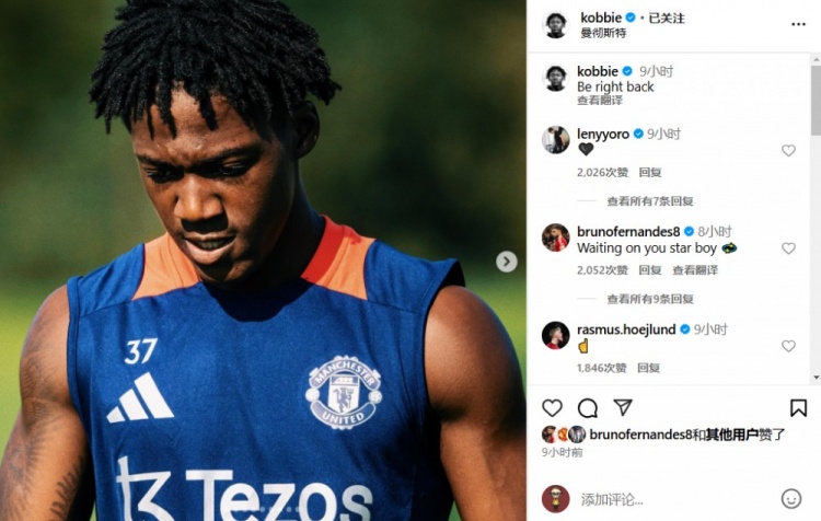 许多曼联队友都在评论区发表情祝福,而布鲁诺-费尔南德斯则写道:“等你回来,明星男孩。”