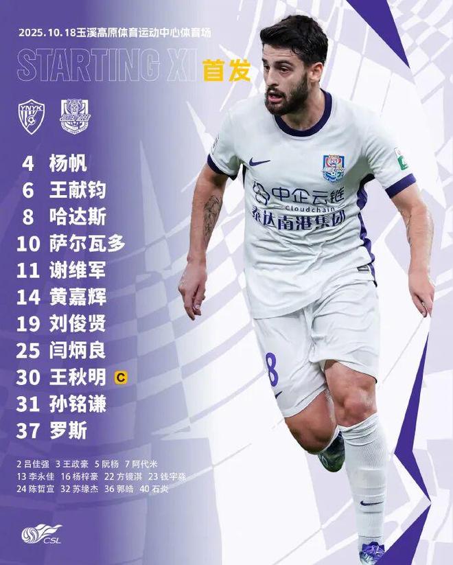 本场比赛,津门虎主力中锋基莱斯累积4黄停赛,巴顿也因伤缺席,因此球队在首发阵容上被迫做出人员调整。前锋线上,刘俊贤单箭头顶在最前面,巴顿的位置则由杨帆替代,阿代米继续作为后手坐在替补席上。