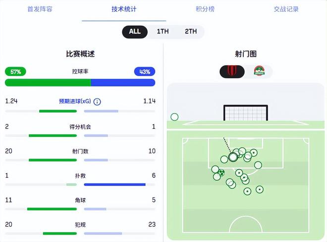 成都蓉城的预期进球是1.24略高于河南队的1.14,不过他们的射门数有20次,预期进球也是靠射门数积累出来的,平均每脚射门的质量偏低,绝对得分机会只是2比1,说明差距很小。