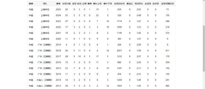 自2007年登陆中超后,他已在联赛活跃19个赛季,生涯最高身价65万欧,期间效力过辽宁队、大连人、广州队以及上海申花。