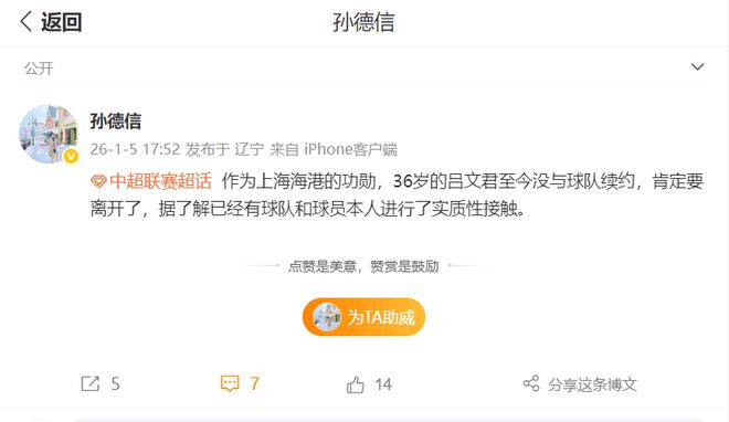 日前,36岁的上海海港功勋吕文君未获续约、大概率离队的消息,引发了球迷热议。这位见证球队从中乙到中超三连冠的 “崇明一期” 元老,在2025赛季仅收获11次登场,逐渐淡出主力阵容